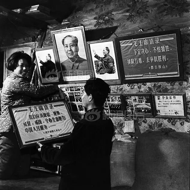 1966年12月10日,黑龍江省阿城縣阿什河公社,小兩口裝飾新房。攝影|李振盛