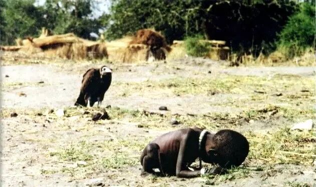 圖片:《饑餓的蘇丹女孩》又名《欺淩的蘇丹》(英文:The Starving Sudan )是凱文·卡特贏得九四年普立茲新聞特寫攝影獎的作品。