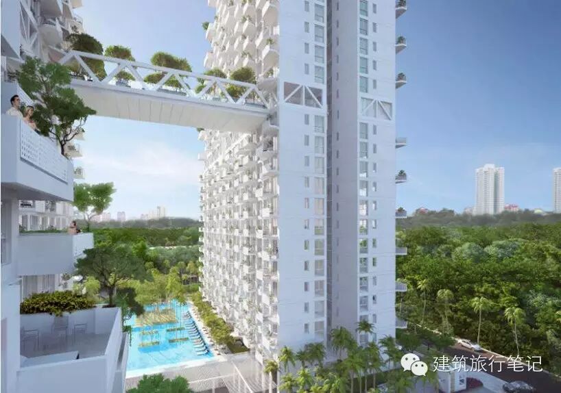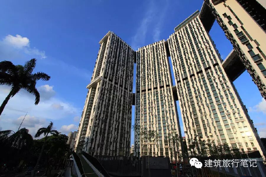 由於新加坡是熱帶地區,再不用考慮朝向的前提下,建築的擺放形態就可以自由發揮了。建築的疊加形成了數個庭院,交織的空間變成了空中花園等垂直院落,整個尺度感和給人的視覺衝擊還是有點嚇人的。下次你們去走南部山脊的時候可以留出一點時間去參觀一下啦。