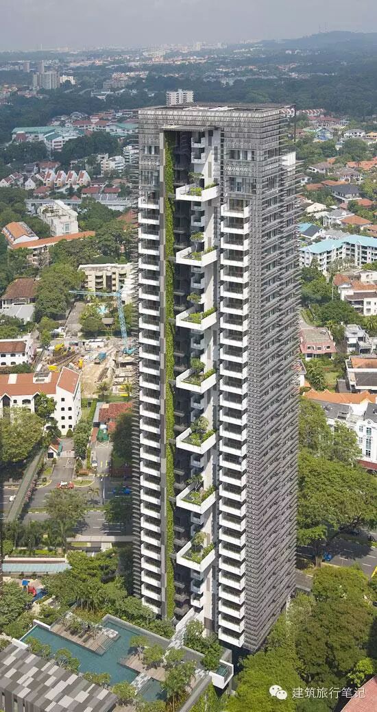 點評:豪宅離我的住處不遠,每天都會路過,驚歎於其豐富且現代的立麵處理和垂直植物利用,但不成想到它的過那麽多獎。這個高層公寓的Newton Suite項目有36層高的塔樓包括118個公寓。某天總算鼓起勇氣尾隨一位女業主進了小區內部轉悠了一圈,最後還是以被印度保安趕出結尾,但是整個建築的細節,比例和空間都做的很到位,建築和景觀無縫相接,大尺度的空中花園懸挑也奠定了其豪宅地位。