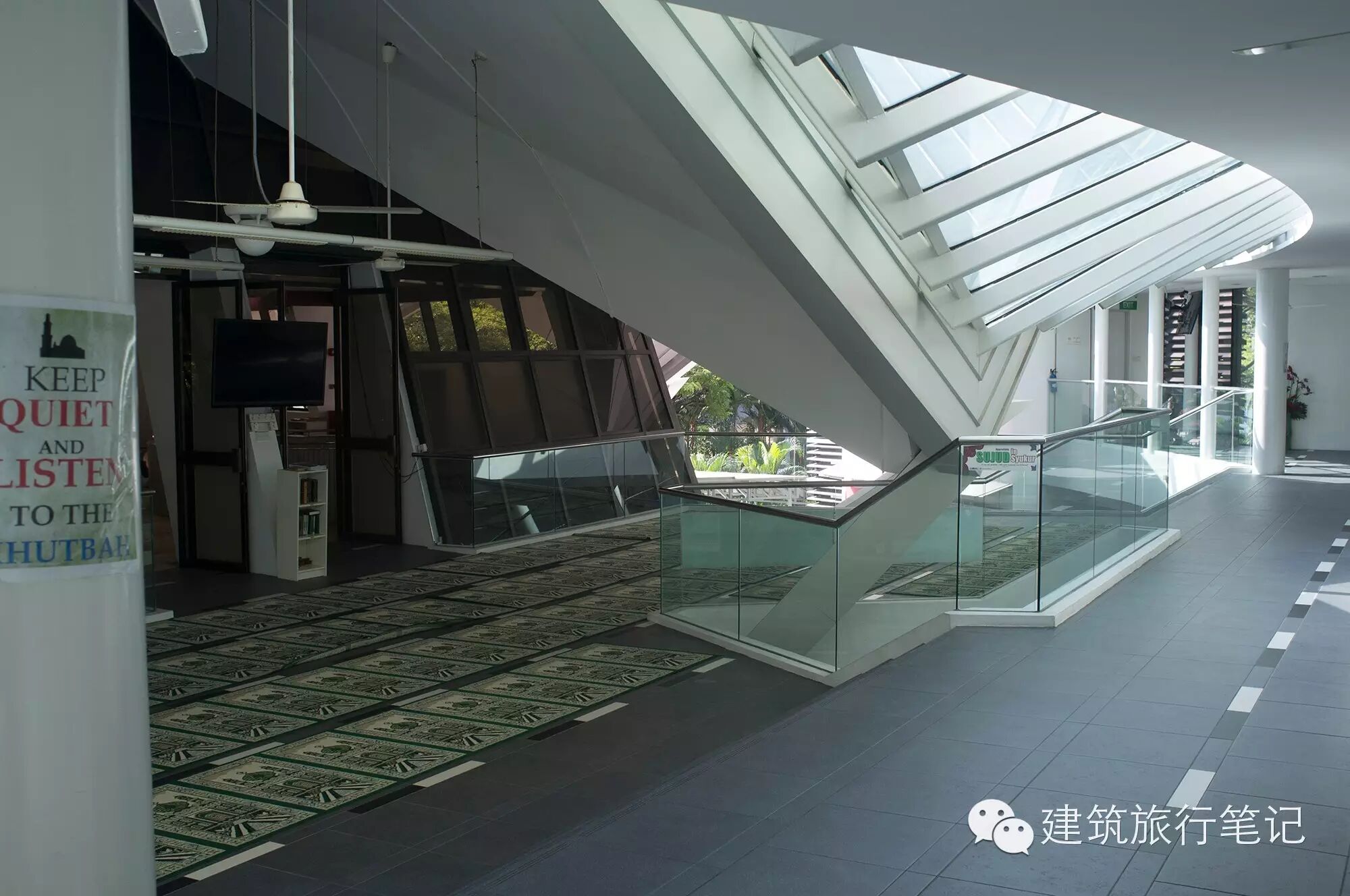 點評:“清真寺”三個字就會讓人本能的聯想到一些特有的元素,但是阿爾法哈清真寺卻很獨特。整個建築布置向心感非常強烈,中間是一個近乎圓形的禮拜堂,周圍是一棟輔樓,輔樓沿街一側是直的,而圍繞禮拜堂一側的走廊則是曲線貼合的,走廊麵西,還采用了彩色金屬片的形式圍合,使得光影斑駁。清真寺不大,位置也不是太好找,如果你也和我一樣時間充裕,那就過來逛逛吧。另外,新加坡還有阿爾伊斯拉清真寺(Singapore Al isla mosqu)和由ONG&ONG Pte Ltd設計的阿爾安薩清真寺(Singapore Al-Ansar Mosqu)也都值得去參觀!
