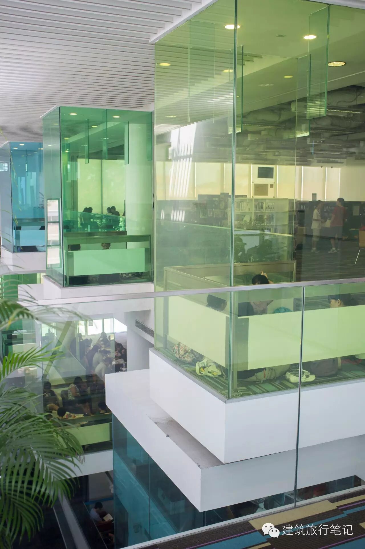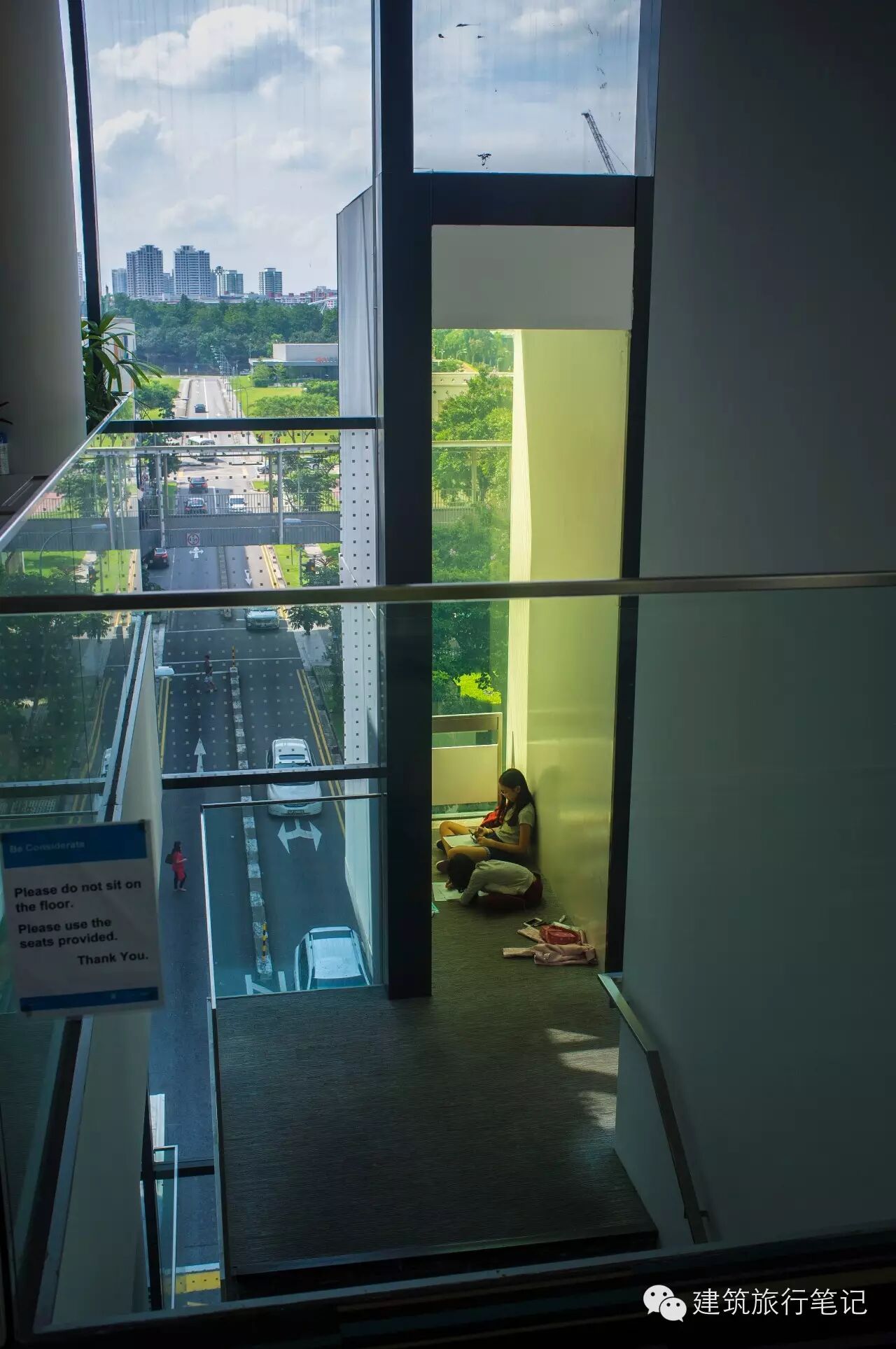 點評:不得不說,新加坡建築由於氣候關係,高層建築的轉換空間留設植栽層的做法很普遍,國立圖書館算是一個比較好的例子,而且往往這些區域非常受讀者的歡迎,是一個天然的討論區和休息區。