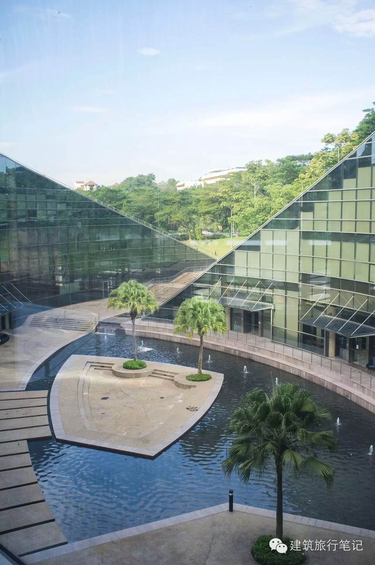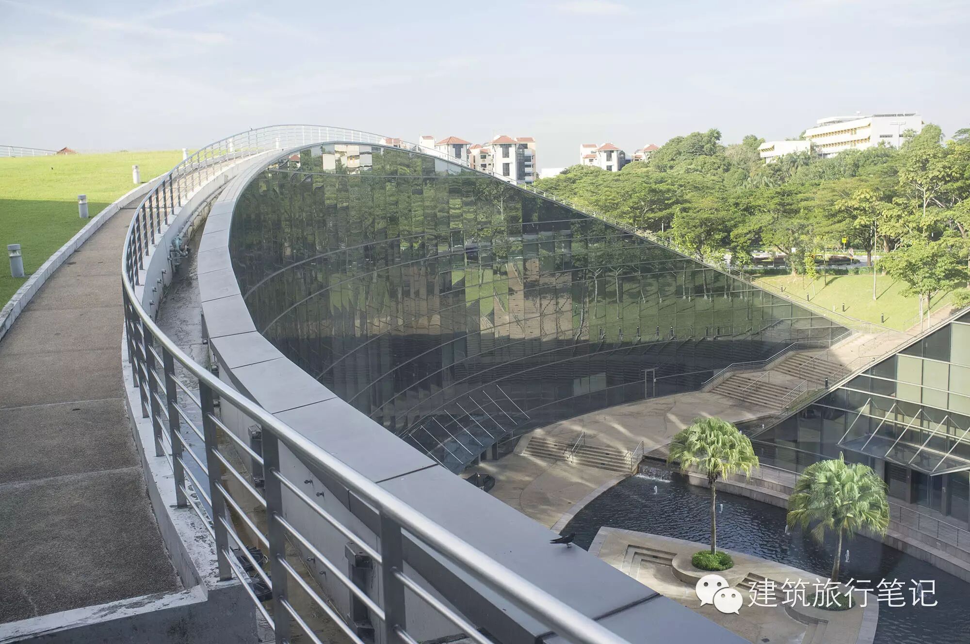 點評:這個建築估計不用我多介紹大家都很熟悉了,算是一個生態建築的代表吧,不過南洋理工還是蠻遠的,下了地鐵還要換乘學校的公交進去。建築位於校園核心,周圍都是樹,環境很好,造型上也像是一個綠肺,內部立麵采用高性能隔熱玻璃幕,很純粹,學生們可以愜意的享受建築圍合成的室外空間。我還特意爬上了綠坡頂看了一眼,嘻嘻。