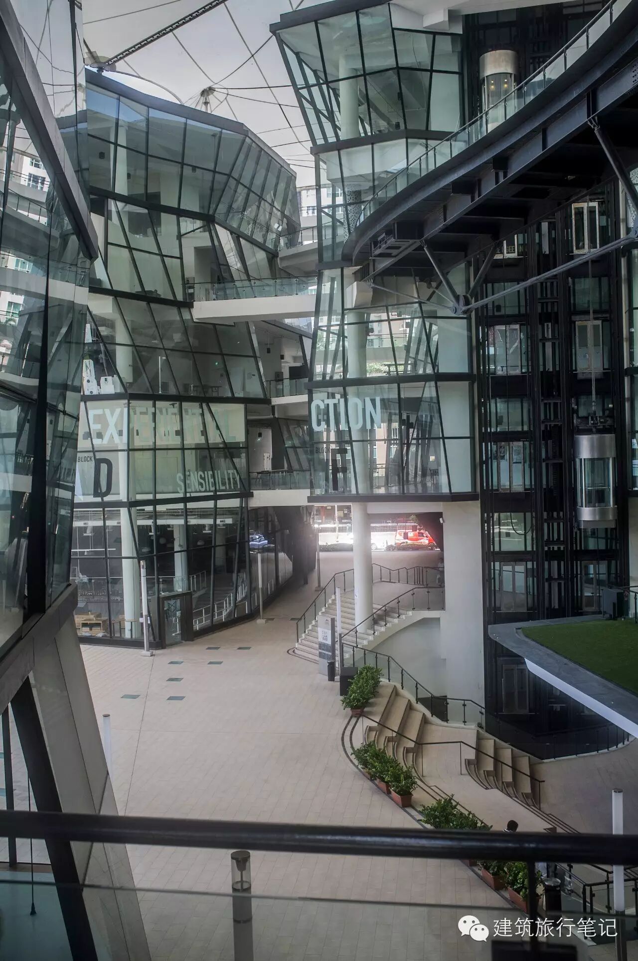 點評:逛街的時候無意間看見這個建築群,它連接了城市中兩大重要藝術館,並形成了通往福康寧公園的通道,起先以為是一個沒有開業的商場,後來再一次經過仔細看了一下名字才知道是一所大學。這種直接建造在城市中心的開放性大學在國內還是比較罕見的,場地特性注定了其景觀設計的開放性與共享性。中央花園、開放的建築地坪以及屋頂花園形成了景觀的三個層次,突出了軟質景觀連接邊緣。原有的樹木都得到了保留,廣闊的雨林植物加強了人們對於花園城這些早期綠地的記憶。建築外立麵的每個窗台都點綴有精致的綠色植物,減少玻璃窗熱負荷的同時更將建築與景觀和諧相融。