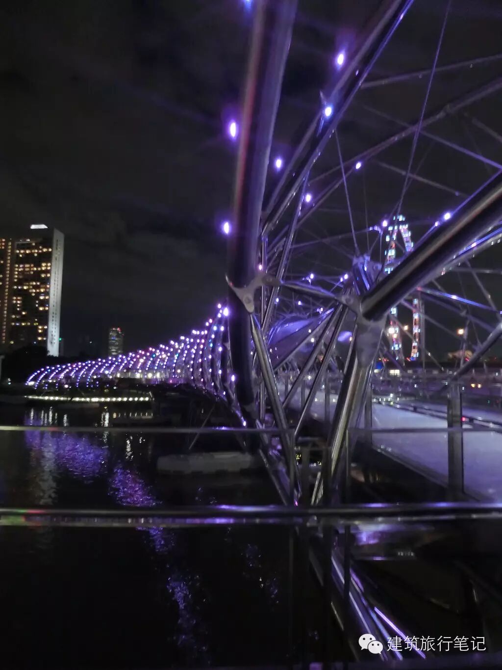 點評:這個是一定不會擔心錯過的景點,因為螺旋線人行橋位於新加坡河上遊地段,連接新加坡城市既有CBD和新的濱海地區。設計概念是將橋體彎曲,形成一個拱形,目的是為了使橋身流暢地連接河道兩側的人行大道。設計還能使橋體在中心位置與另一個橋體的人行道相連。橋體輕盈精致,呈現出雙重螺旋線結構。這種形式形成一個由玻璃板麵和穿孔鋼鐵定義的蓋頂結構。結構的形式高效,同時生成一種沿途的移動感。推薦晚上去欣賞亮燈的橋,很美。