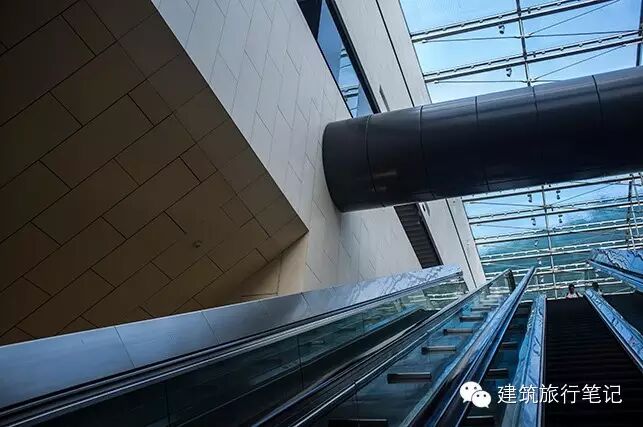 點評:這個給我留下印象最深的有兩個地方,一處是進入時的主入口立麵還是保留了原先的歐式樣貌,參觀完從一個表皮純現代造型的出口出來時,就像走過了幾個時代;二十新舊建築結合部位的中庭設計,此處成了遊客最集中的休息場所,很好的進行了建築功能與風格的轉換。