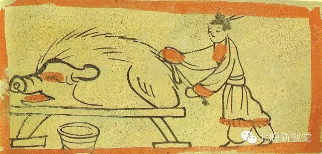 古代廚師正在製作菜肴中,廚房裏掛三大塊肉(甘肅嘉峪關魏晉墓)首先是受到遠古食肉風俗的影響。古人肉食主要來源於馬、牛、羊、雞、犬、豕等“六畜”。六畜也是古代祭祀使用犧牲的肉品。六畜中最常用的是牛、羊、豕“三牲”。那又為什麽六畜中,唯獨豬肉被吃得最多?在古代,馬是重要的戰備軍需物資,牛是重要的農耕工具。先秦時,秦國已頒布了中國最早的畜牧法規《廄苑律》。據《鹽鐵論·刑德》,在秦代,“盜馬者死,盜牛者加(枷)。”《淮南子·說山訓》中認為,“殺牛,必亡之數”,因為牛乃農耕之本。這一觀點為此後官府所奉行,從魏晉到明清,幾乎曆朝都有禁止殺牛的規定。與此同時,養豬卻被鼓勵,從孟子每家“二母彘,五母雞”,到漢代每家“一豬,雌雞四頭”,曆代在勸課農桑時無不倡導養豬。為什麽?與禁殺牛一樣,也是發展農業的需要。清蒲鬆齡在《養蠶經》中的說法最有代表性:“歲與一豬,使養之”一年下來能積20車種田所需要的肥料。