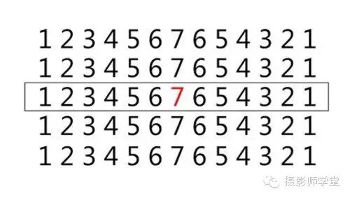 大家是否在家也拍出達到要求的圖片了呢?接下來對這個實驗作出分析:因為前提需要紅“7”清楚,所以對焦點一定是選在紅“7”上,這點毫無疑問。除此之外,實驗要求讓與紅“7”一行的其他字盡可能的模糊,說明一定要達到景深最小的效果。