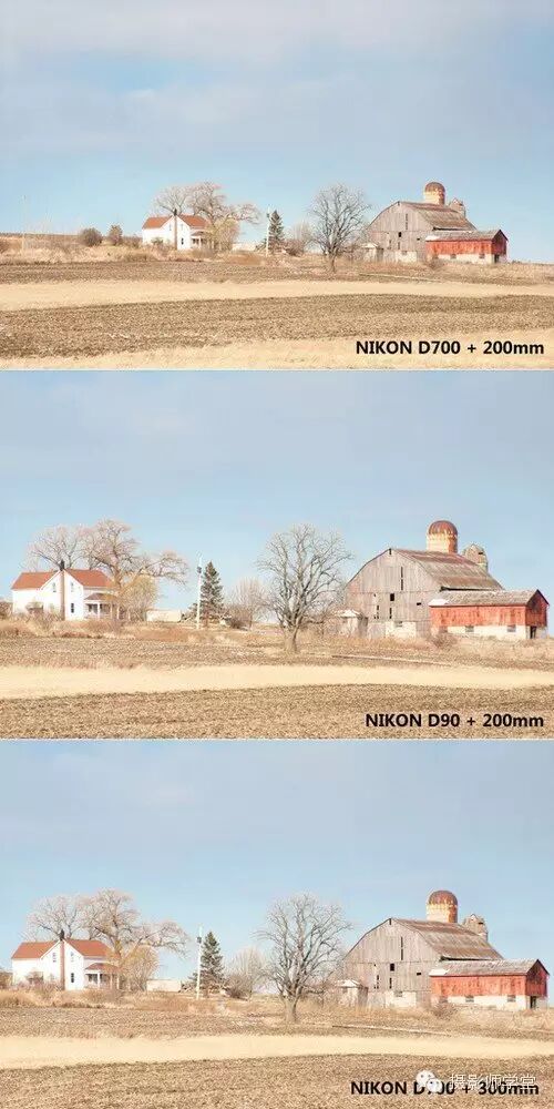 從圖中我們可以看出一個200mm的鏡頭在APS-C畫幅機器尼康(Nikon)D90上拍攝到的範圍與一個300mm鏡頭在全畫幅機器尼康(Nikon)D700上一致。