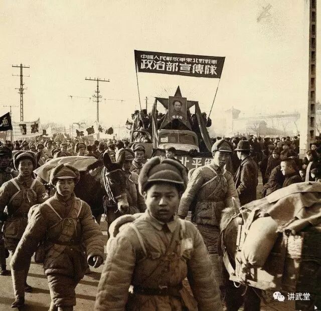 1949年2月,我軍後勤部頒發《陸軍被服裝備標準草案》,1949年6月頒布八一軍徽。軍服定為草綠色,左胸佩戴解放軍布胸章的樣式。頭戴圓形短簷的解放帽,佩戴“八一”紅五星金屬帽徽。這是我軍曆史上第一次統一式樣和顏色的軍服。此時的軍服被稱為49式軍服。