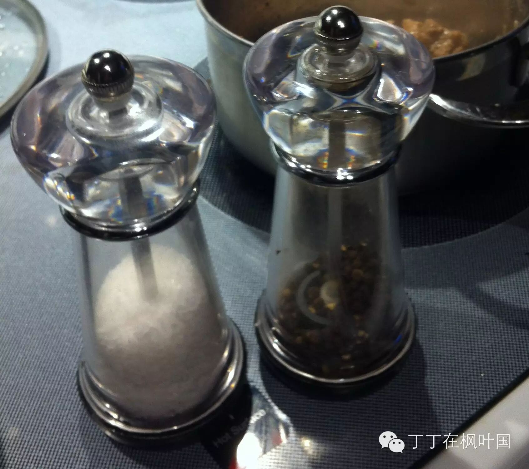 希望在家嚐試西餐的媽媽可以在家裏常備橄欖油、balsamic venigar(超市裏有,方瓶兒的意大利果醋,拌沙拉常用)和黑胡椒(家裏最好備一個裝黑胡椒的研磨瓶,宜家好像就有賣的。用的時候擰兩下可以很均勻地把胡椒碎撒在菜上。我家這個沒多少了,大家主要是看個瓶子哈),這些調料就像中餐裏的醬油、香油、醋,日常餐桌上離不了。洋蔥的作用也很重要。