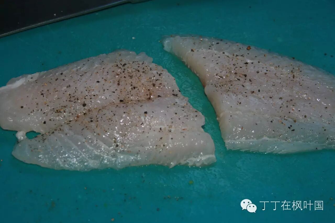 先都是要室溫化凍,然後用廚用紙巾把魚上的水吸幹,不要裹麵粉。兩麵撒鹽和黑胡椒碎備用。