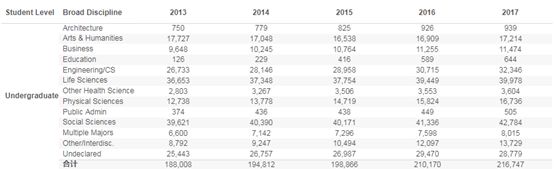 在專業方麵,剛入學的大一新生中,5.3%的學生選擇讀商科,14.9%的學生讀工程或者是計算機科學,18.4%的學生選擇讀生命科學,19.7%的學生選擇讀社會科學。