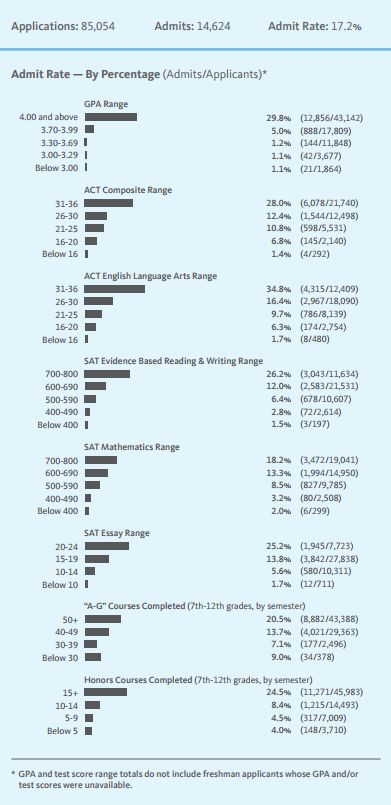 2017年,加州大學伯克利分校的錄取率達到17.2%。