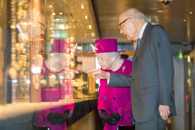 找到一篇介紹何東先生的文章,文章裏麵有女王參觀這個展廳的照片。女王身邊就是何東先生。