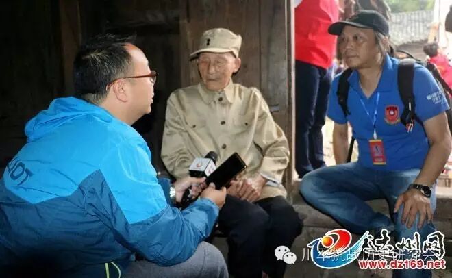 四川抗日老兵救助會達州分會會長張紀唐(右)接受記者采訪