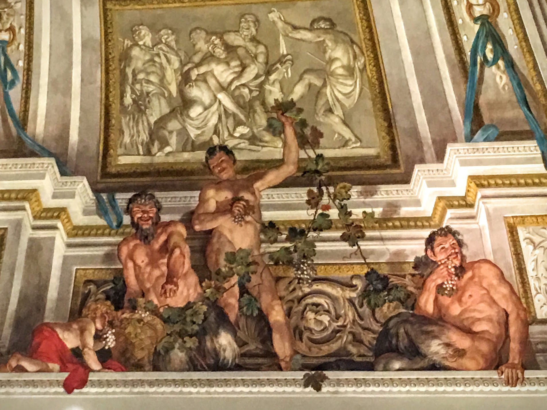 這個地方很迷人的一點是,天花板上,都是畫,而且非常輕鬆搞笑,非常立體