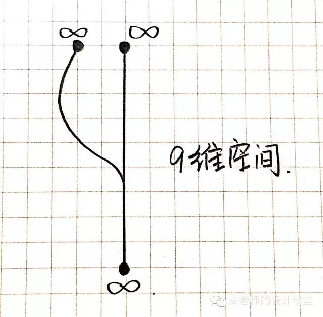還記得文章開始時提到的一維的線麽?我們把另外一條線穿過它,就變成了二維空間。同樣的道理,我們來給七維空間升級。例子呢,還是那個“你”。我們又找到了兩個點,一個是由“大學畢業的你”為開端產生的七維無限點,另一個是由“50歲的你”為開端產生的無限點。將這兩點連線,與上文中那條連接“初中畢業的你”無限點“小學畢業的你”無限點的這條線相交。我們就得到了八維空間!