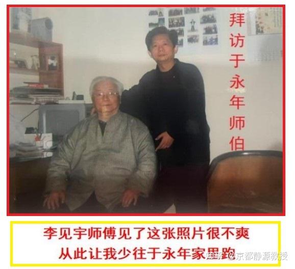 第二,隻有意拳門內的深度知情者才知道:於永年師伯和李見宇師傅兩個人長期不和!不和到什麽程度?相互從不同時到場和見麵:於到李不到、李到於不到。他們兩個人從上個世紀40年代晚期,即1948年春開始,就相互不來往、不說話、不共事。李見宇師傅明確警告我:“沒事少往於永年那裏跑”。見我拜訪於永年師伯時的留影,如下: