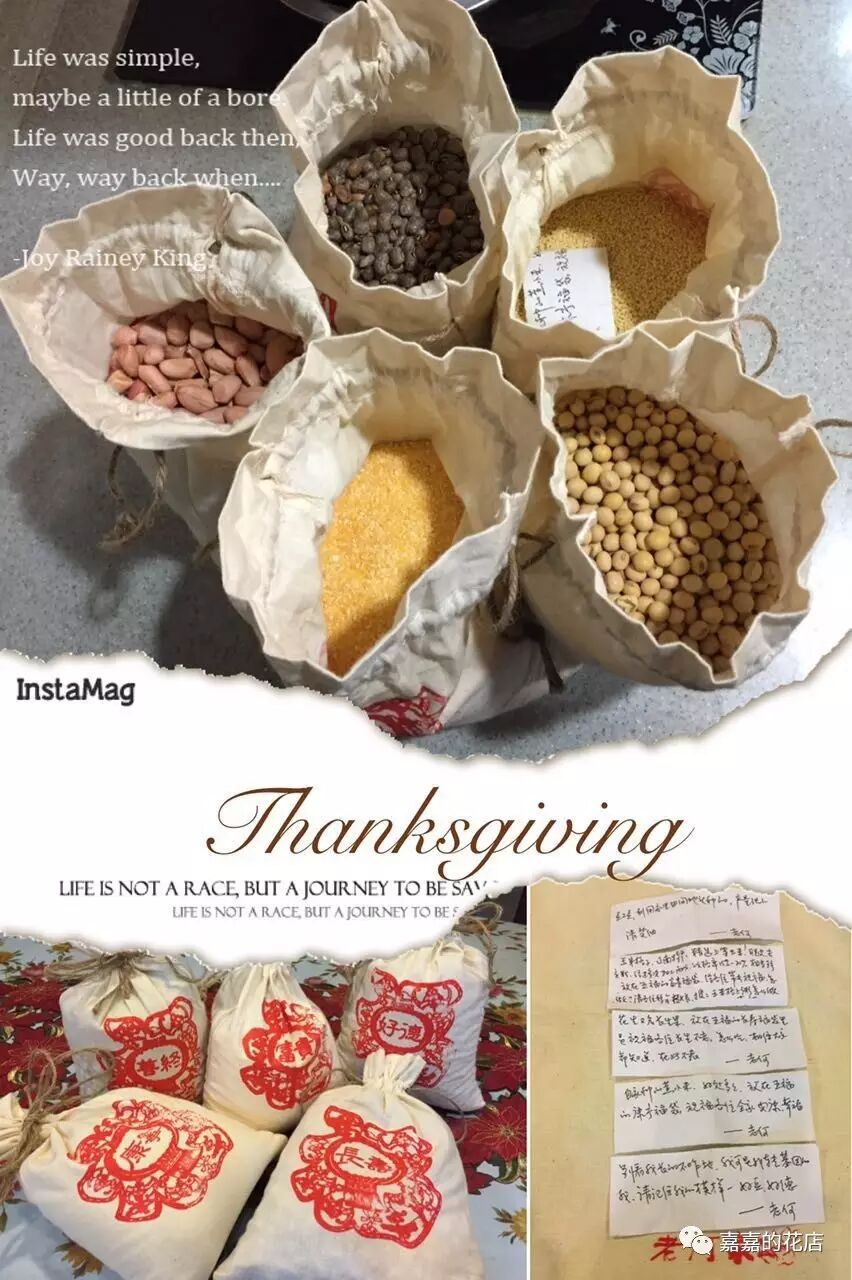 說起這五福,去年的這個時候我還收到過一份別致的禮物,實打實的五福。我的一個高中同學因為身體不好在家休養得到了同學們長期的關愛,他一直想用一個方式表達一份感謝,就用家裏的五穀雜糧做了一份五福臨門的包裹,裏麵裝上了他滿滿的謝意和祝福:長壽福袋裏裝的是花生仁,花生也叫長生果,放在這裏正表其意;富貴福袋裏裝的是玉米格子,金黃色的玉米提取物寓意這富貴豐收;好德福袋裏裝的是黃豆,自家產的非轉基因,黃豆正好諧音好德,好豆好德內外兼表;安康福袋裏裝的是黃小米;善終福袋裏裝的是芸豆。每一個福袋裏都精心地安排了土地裏的一份饋贈。這是一份很實在的祝福,帶著溫暖帶著心意送到了每個人的手裏,福分就像一個圓在朋友中間遊走循環,不斷地擴散開去。