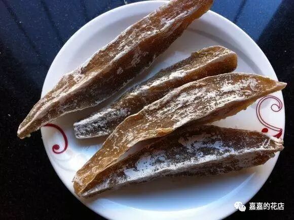 一看那成色就知道是自己家曬的,暗黃色夾雜著黑白不均勻的點子,還帶有些許的白霜,雖說現在某寶也有很多打著純手工做的地瓜幹,但這種來自親人親手做的還是別有一番風味的。