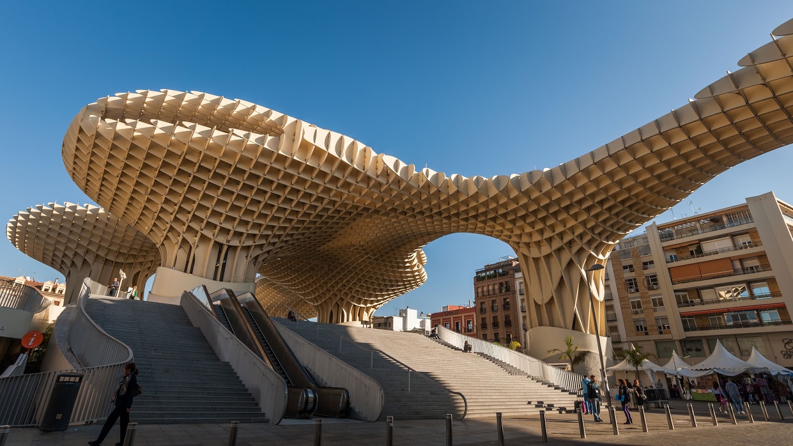 都市陽傘 (Metropol Parasol),由德國建築師於爾根·邁耶-赫爾曼設計,於2011年4月建成。它高約26米,曲線優美,造型新穎獨特,據說是世界最大的木質建築。