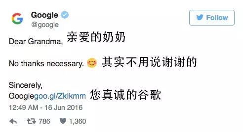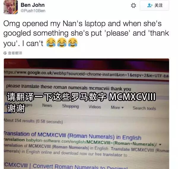 「12」一網友發現他奶奶用穀歌搜東西居然還帶上了敬語,後來穀歌官方還回應了一下這位有禮貌的奶奶,感覺有點萌