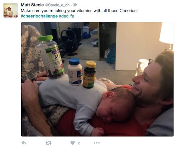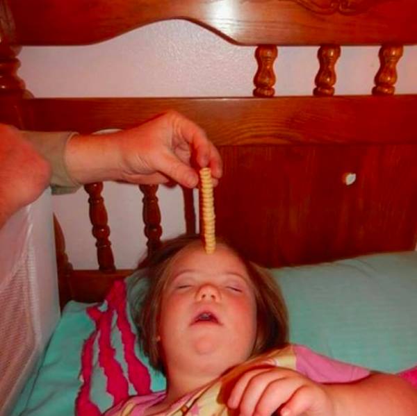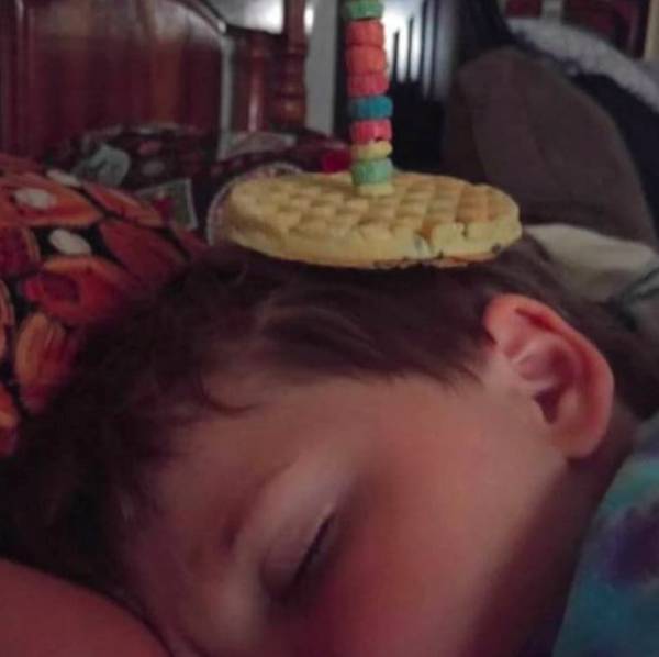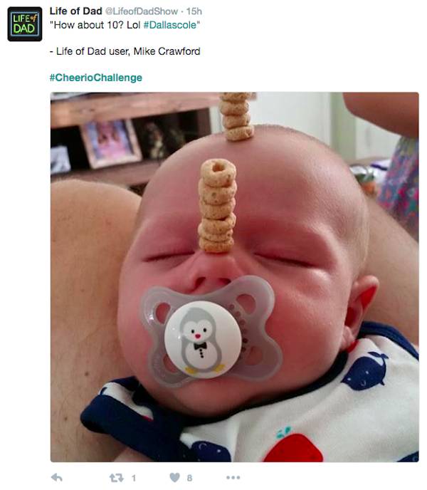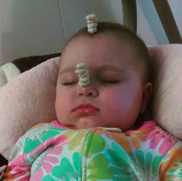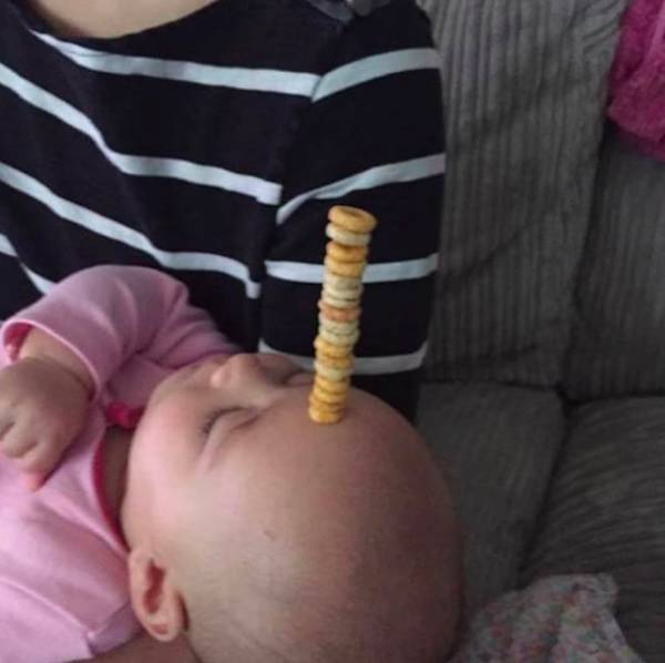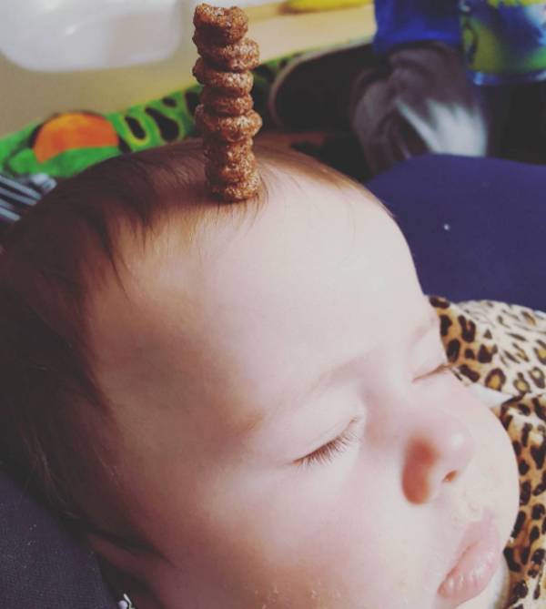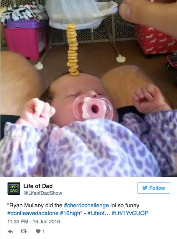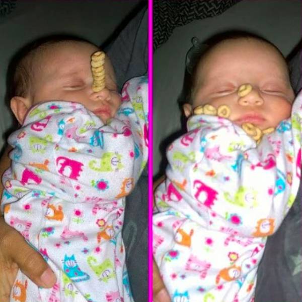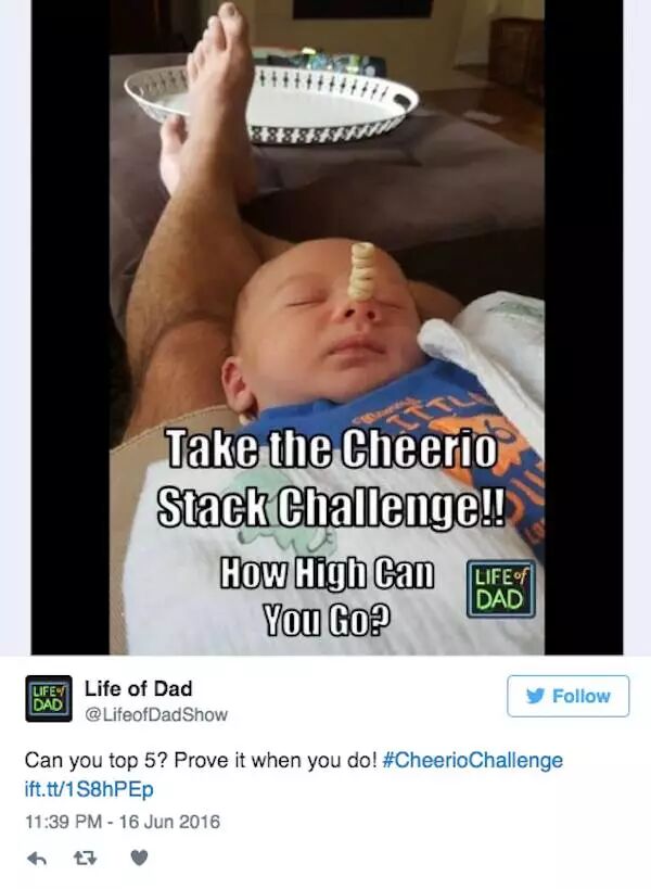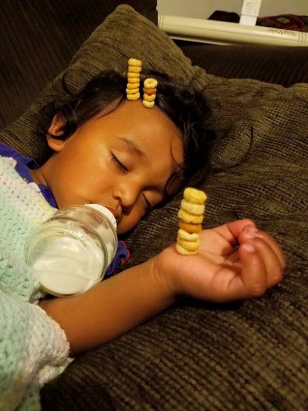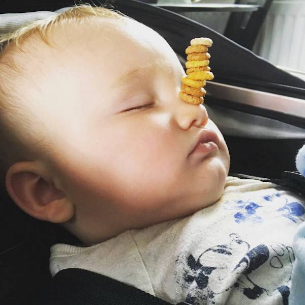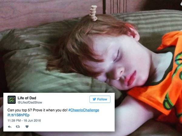 Twitter上最近有個叫“Life of Dad ”(孩子爹的日常)的帳號最近發起了一項滅絕人性的“甜麥圈挑戰”,號召爸爸們比比看誰能在自己家睡著的孩子身上碼上最多的甜麥圈。。。