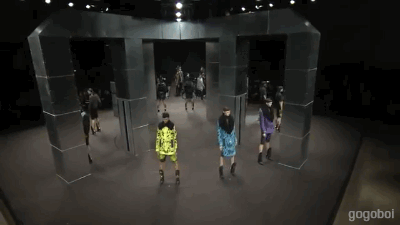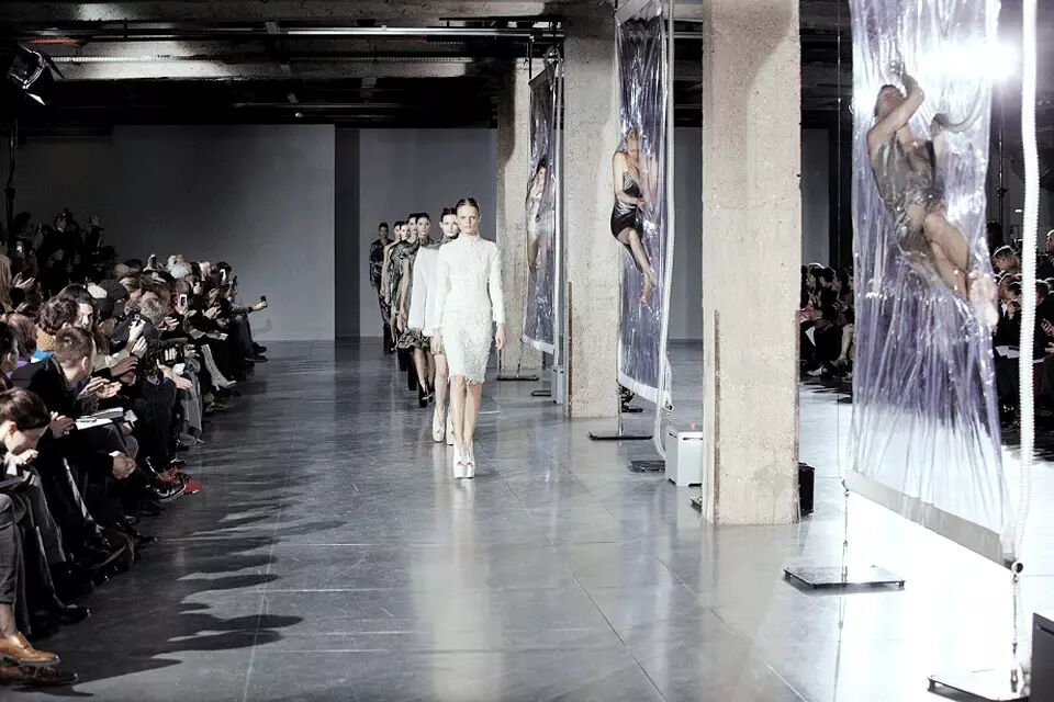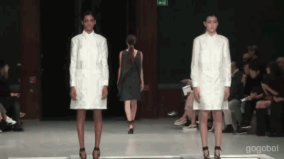 Alexander Wang 2014秋冬係列秀場上,模特黑壓壓地走進場,站到轉盤上。金屬通風口把他們一一加熱,見證奇跡的時刻就到了……