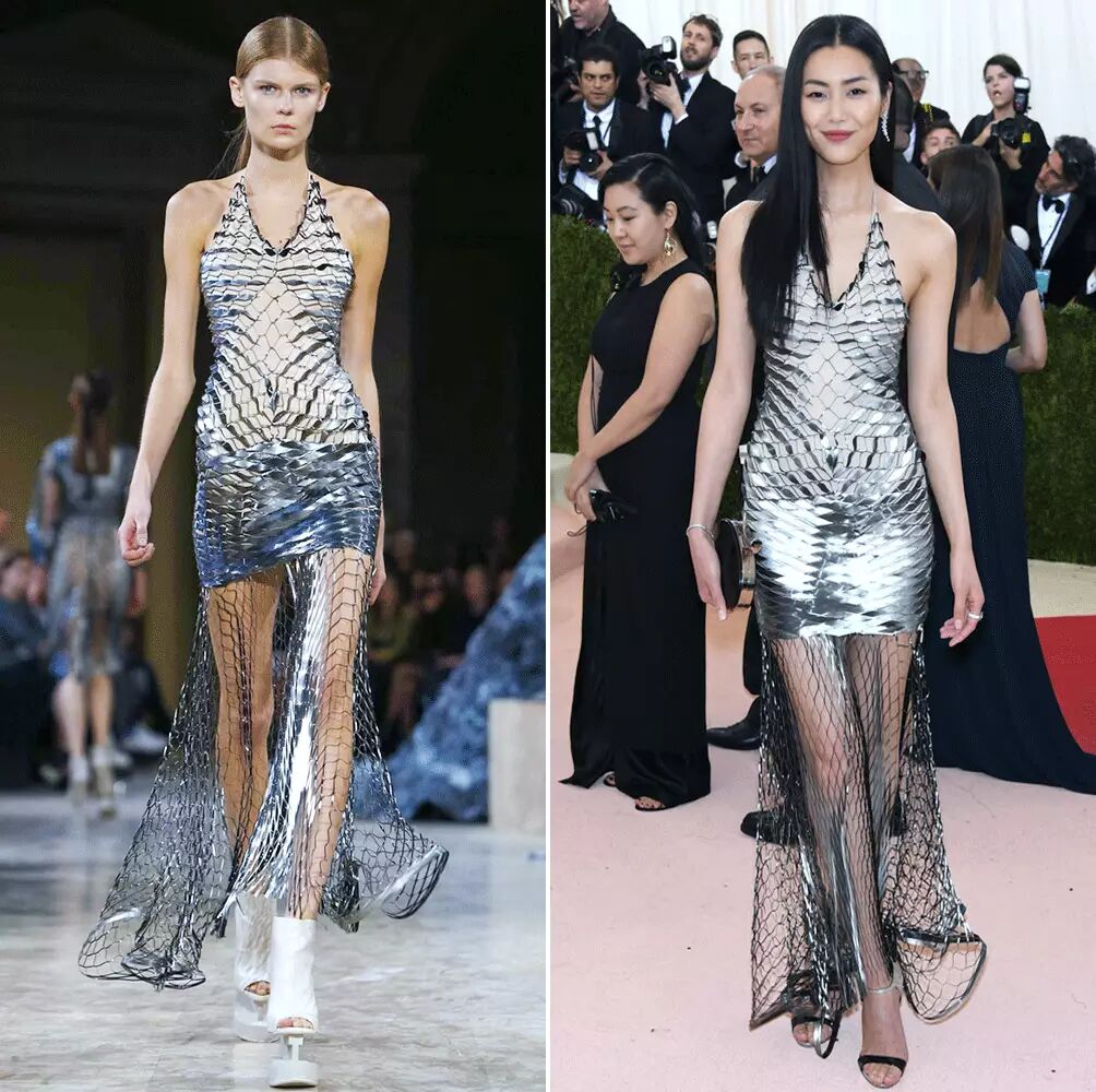 劉雯前天Met ball上的那條金屬美人魚裙子就來自她的2016春夏係列。