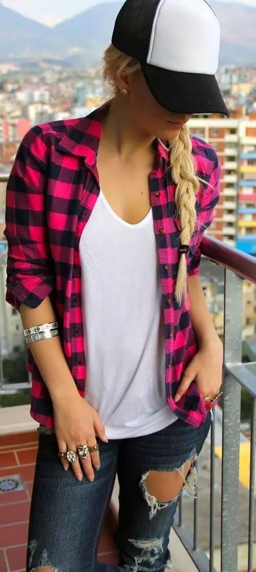 寬鬆隨意的休閑格子襯衫+破洞牛仔褲,並沒有什麽新奇,而一頂黑白相間的帽子分分鍾讓你路人變身明星範兒~