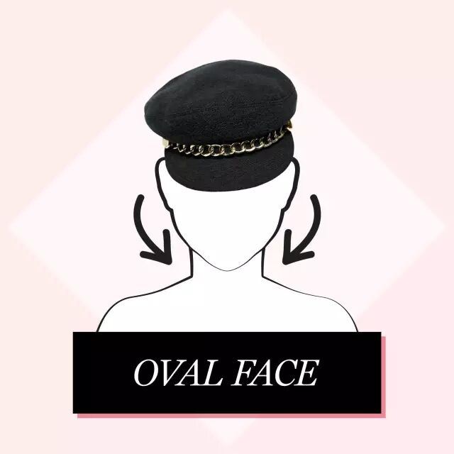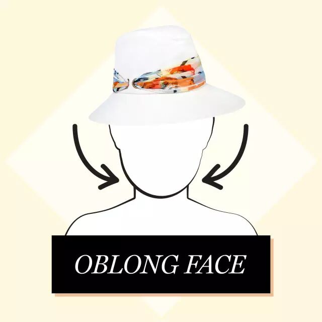 臉型屬於長橢圓形的你要選擇短帽子來修飾你的臉蛋,優雅的鍾型帽,漁夫帽或者鬆軟材質的帽款都很適合。