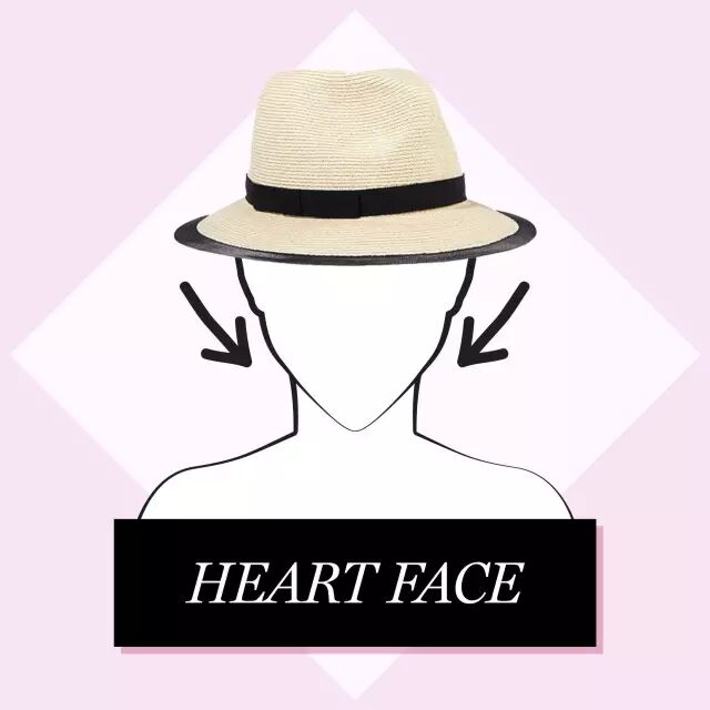 想要讓顴骨以上看起來消瘦一些,才不會讓你的下巴看起來過於細長,這時候要選擇的是長度適中的寬邊帽,來達到修飾效果喔!