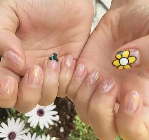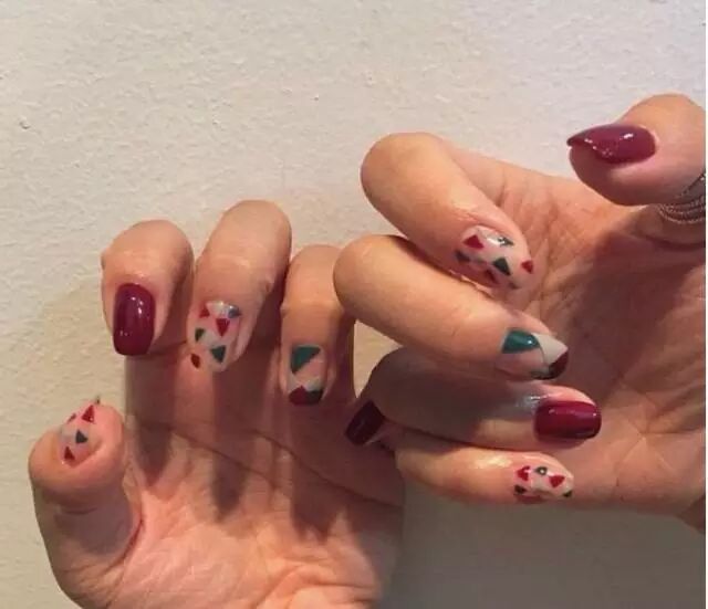 冰淇淋色和熒光色是夏季各大品牌推出的重點,選擇色彩恐懼症們不妨嚐試下這些配色DIY。黑妹子的苦惱就是但凡選錯了顏色,做完美甲雙手雙腳簡直就像車禍現場,不忍直視。別瞎做,顯手白的顏色是下麵這些。黑色:無論什麽膚色,黑色指甲油都會讓你的膚色看起來自然又白皙。咖啡紅:顯白利器,比正紅色深邃不少,低調的奢華中又透著優雅,成熟女人偏愛的顏色。寶藍色:複古女郎的不二選擇,在讓你的手看起來白皙明亮的同時,也彰顯一種獨立、冷靜。暖粉色:雖說暖粉色對手指潔淨程度的要求比較高,但它顯白乘蘇、絕對是數一數二的。橙色:雙手皮膚比較暗黃的一定要遠離橙色等所有暖色係指甲油,講真,非常容易顯黑!高閃光色係:指甲油閃光度過高的畫也不是安全牌,因為一旦過亮便會顯得手很晦暗,選錯色的話就會有濃濃的鄉土feel。玫紅色:如果你是黑妹子,那枚紅色簡直就是“災難之選”,塗上去那一刻它能讓你的手黑一圈,哦不,黑兩圈!櫻花粉:說實話,.mumu.真的很想集結一票黑妹子,去討伐發明出櫻花粉這麽反人類顏色的人來!說好的夢幻呢!浪漫呢!我能想到最浪漫的事,就是每天醒來都能看到自己最喜歡吃的水果。夏天嘛,就該蘋果草莓菠蘿橙子櫻桃啥的通通來一套。今年夏天絕對不能錯過的海洋風清涼美甲,如果你也向往馬爾代夫的藍天白雲、椰林樹影,如果你也有海洋情節,即使去不成海邊享受陽光,也可以將美麗的海景留在指甲上。.mumu.的心頭愛,簡約卻不簡單,每一款都暗藏著小心機,美甲界十足的心機girl。幾何之所以如此受歡迎,是因為它百變、百搭,隻要你腦洞大開,就能玩出讓你驚歎的圖案來。迪斯尼樂園已經開業啦,去之前你確定不擼一套少女心滿滿的卡通風美甲?隨意搭配的顏色,唯美的自然過渡,如同在指甲上畫了水彩畫般令人神往,這也是漸變元素的魅力所在。