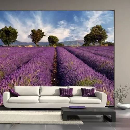 薰衣草田的顏色和沙發上抱枕的顏色很搭。
