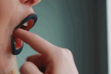 塗完口紅嘬一下手指,嘴唇碰到手指的部位也是嘴唇可以接觸到牙齒的地方,用手指把嘴唇這些地方的口紅帶下來、醬紫就可以避免口紅沾到牙齒上啦~