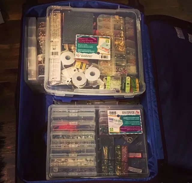 因為要做手工活, 她每次的行李箱都變身工具箱了。 一次她照常帶著她的布匹珠子們飛泰國, 卻被海關誤以為她是倒賣珠子的商販, 扣了一個多小時才脫身。