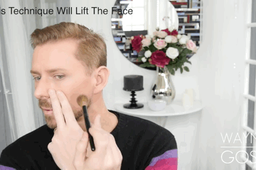 ”halo technique”是Goss大叔發明的一種畫高光的方法,非常簡單、隻需要在畫腮紅位置上以打圈的手法反複刷上高光▼