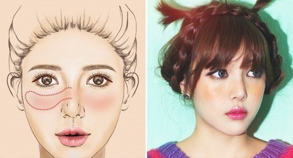 畫法也很簡單噢~隻要在刷腮紅的時候連帶著和鼻梁一起刷,連成一條線就可以啦~不過一定要控製用量不然會變嚴重曬傷!