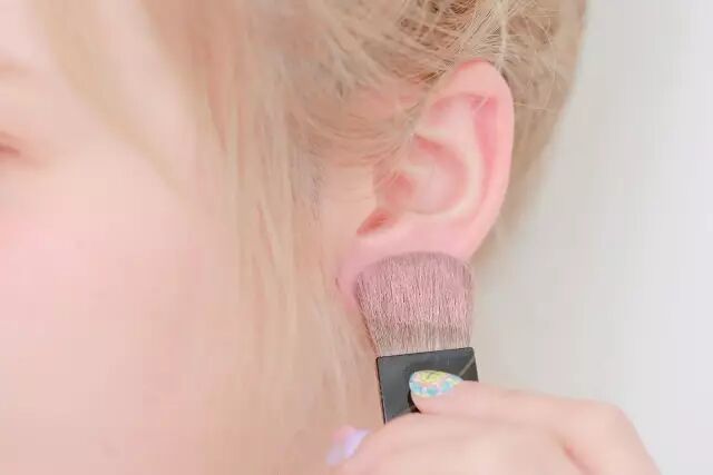 “耳朵腮紅”自帶少女害羞的效果。用化妝刷輕輕掃過腮紅,抖去多餘的粉末,掃在耳朵的輪廓上和耳垂下方。看上去萌萌軟軟的,讓人很有保護的欲望,炒雞適合軟妹和希望戀愛運提升的女生噢!