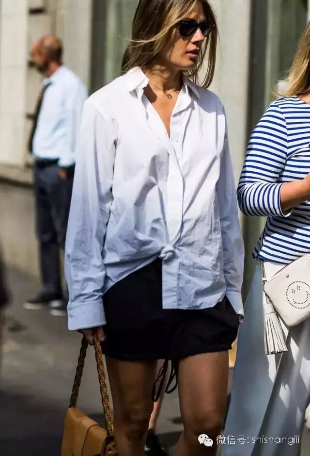 現在還有誰會中規中矩地穿白襯衫,不打個“死結”都不好意思說自己潮。全棉的襯衫很難有這種效果,最好選混紡麵料。
