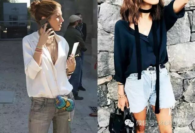 真絲襯衫的垂感比較明顯,紐扣開得恰到好處就已經贏了一半。