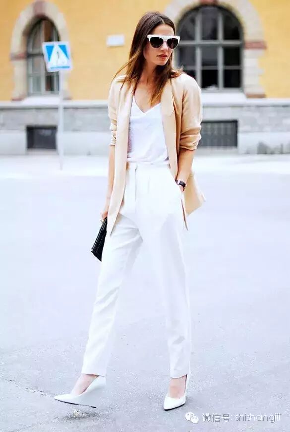 3. 小西裝+大領T恤:完美應對早晚溫差搭配小心機:想休閑,踩球鞋;想正式,踩高跟。