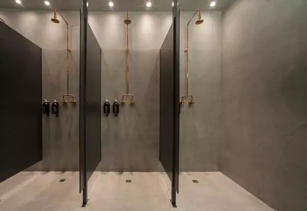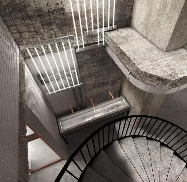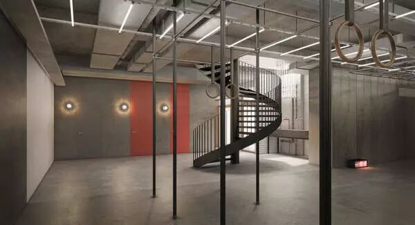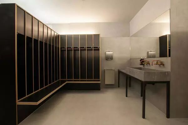 3 年前,銀行家 Erich Züger 辭掉了工作,在蘇黎世開了一家名為“Balboa Silo”的健身房,從倉庫改造而來。上周,他又在市中心 Schanzengraben 運河邊的一幢 60 年代建築裏開出了第二家。這裏除了健身區,還有一間出售小吃和酒水的餐吧,以及一家售賣書籍、健身器材和滑板的概念店,因此取名“Balboa Bar & Gym”。在健身房這樣的“節製之地”攝入酒精飲料多少有些罪惡感。不過 Erick 也沒把這裏看成純粹的健身房,而是一個城市社交場所:“城市生活的不同方麵需要相互碰撞,不然你沒法知道能獲得什麽新體驗。”一樓被劃分為酒吧區,而健身房設在了地下。酒吧的外立麵采用全玻璃設計,使內外通透。室內的長條黃銅吧台,大麵積公共飲酒桌,以及緊鄰公用廁所的混合區,是設計師特意留出的社交場所。酒吧和健身房間由一個大大的旋轉扶梯相連,酒吧地麵還開設了一個天窗。在地下,不同健身區間的隔斷牆中也安裝了大麵積玻璃窗。這不僅增強了地下室的光照,也讓不同區域在視覺上保持貫通。各自區域內的照明也進一步強化了彼此之間關聯。在材質上,由於預算限製,設計師幹脆就讓水泥牆麵裸露在外,配合黑色不鏽鋼立柱、黃銅水龍頭、淺色山毛櫸木、幹邑色皮革以及紅色或黃色燈光,在簡潔的工業風中混入一絲溫暖。