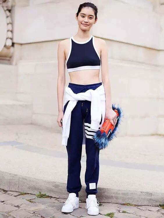 看她的街拍有不少都是運動裝扮。