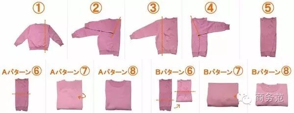 ? 長袖衫:背麵按照虛線折疊兩側→折疊袖子→折疊下端(有A、B兩種方式)→完成