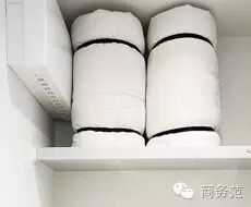 在普通衣櫃的設計中,衣櫃的有效進深往往在550mm到600mm左右。對於小戶型來說,在有限的衣櫃空間中收納被褥的時候,盡量將被褥卷起並垂直擺放,以節約空間。