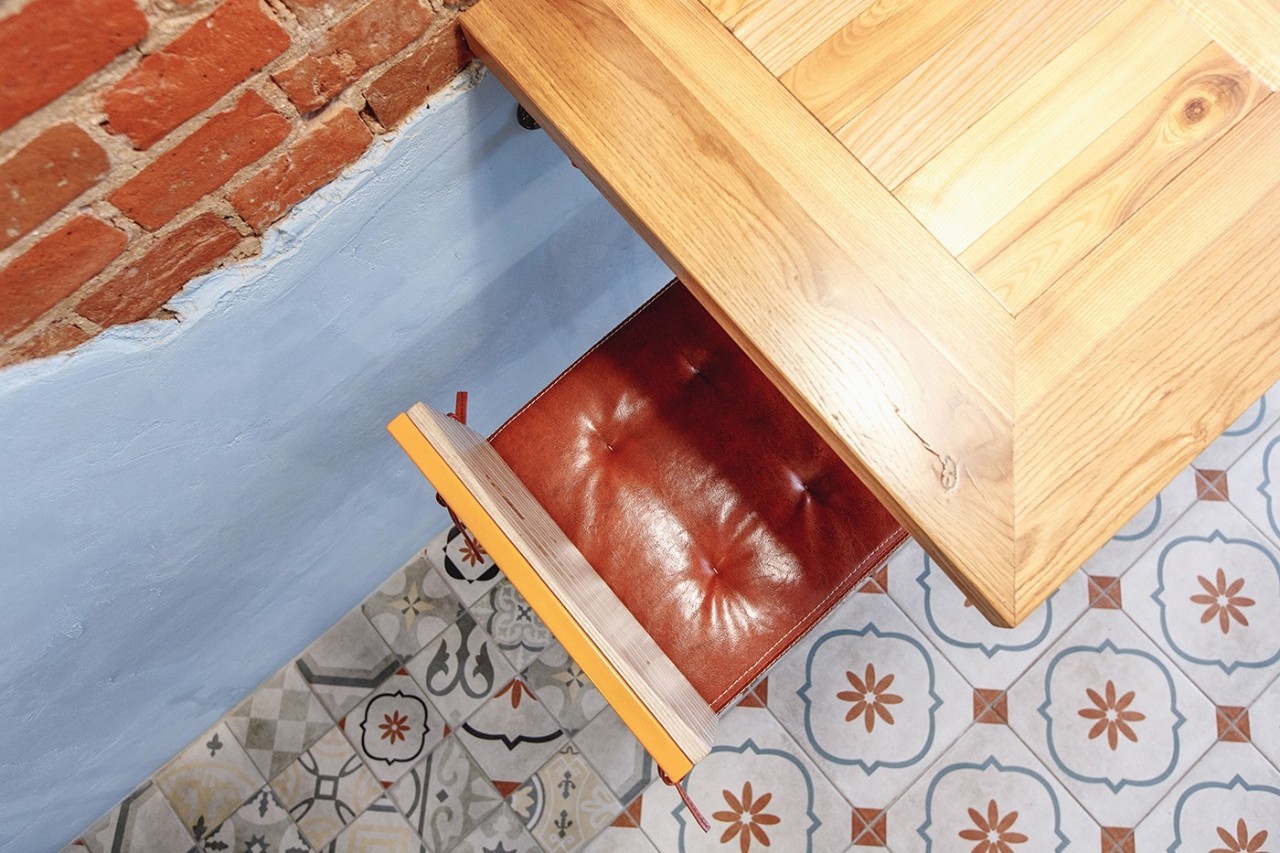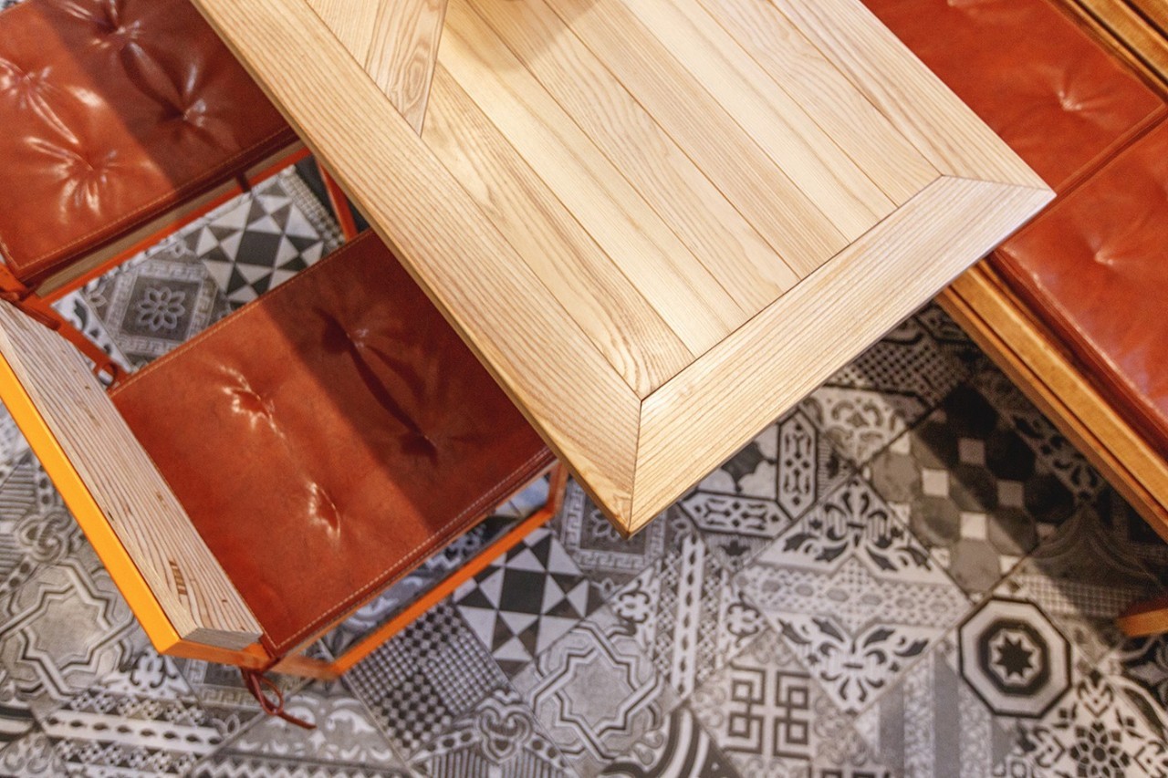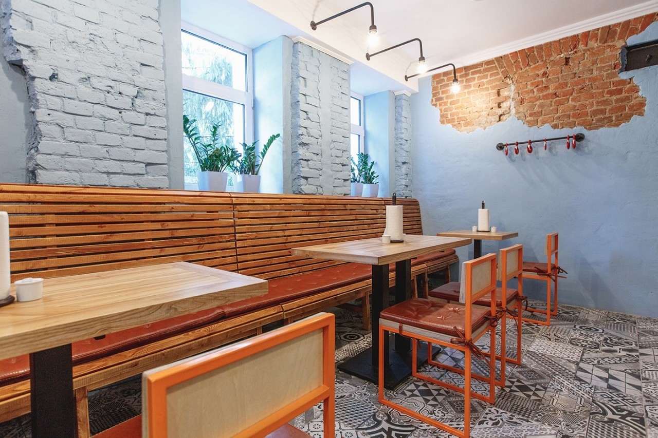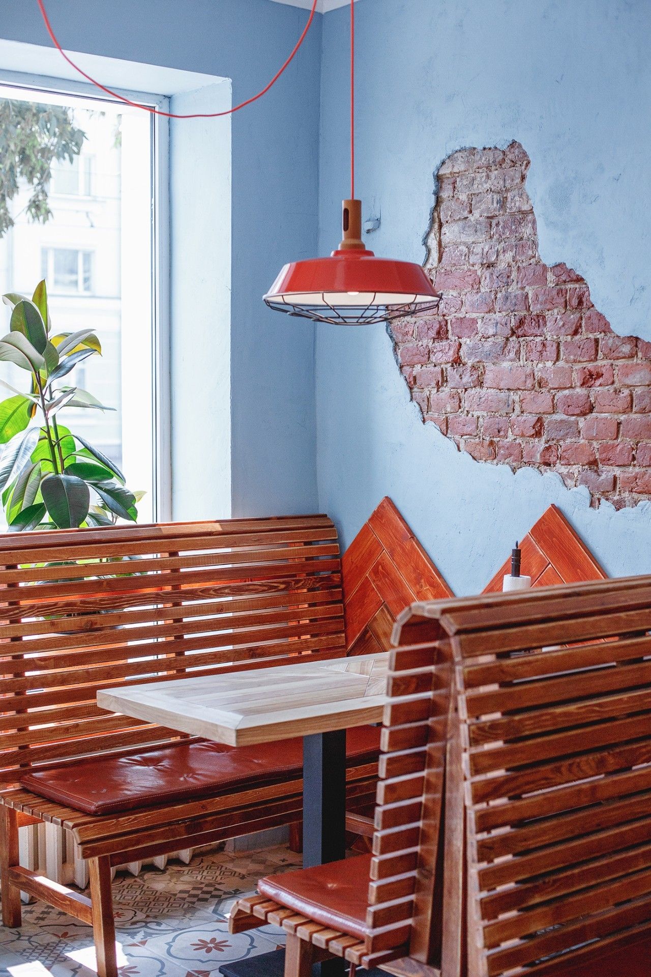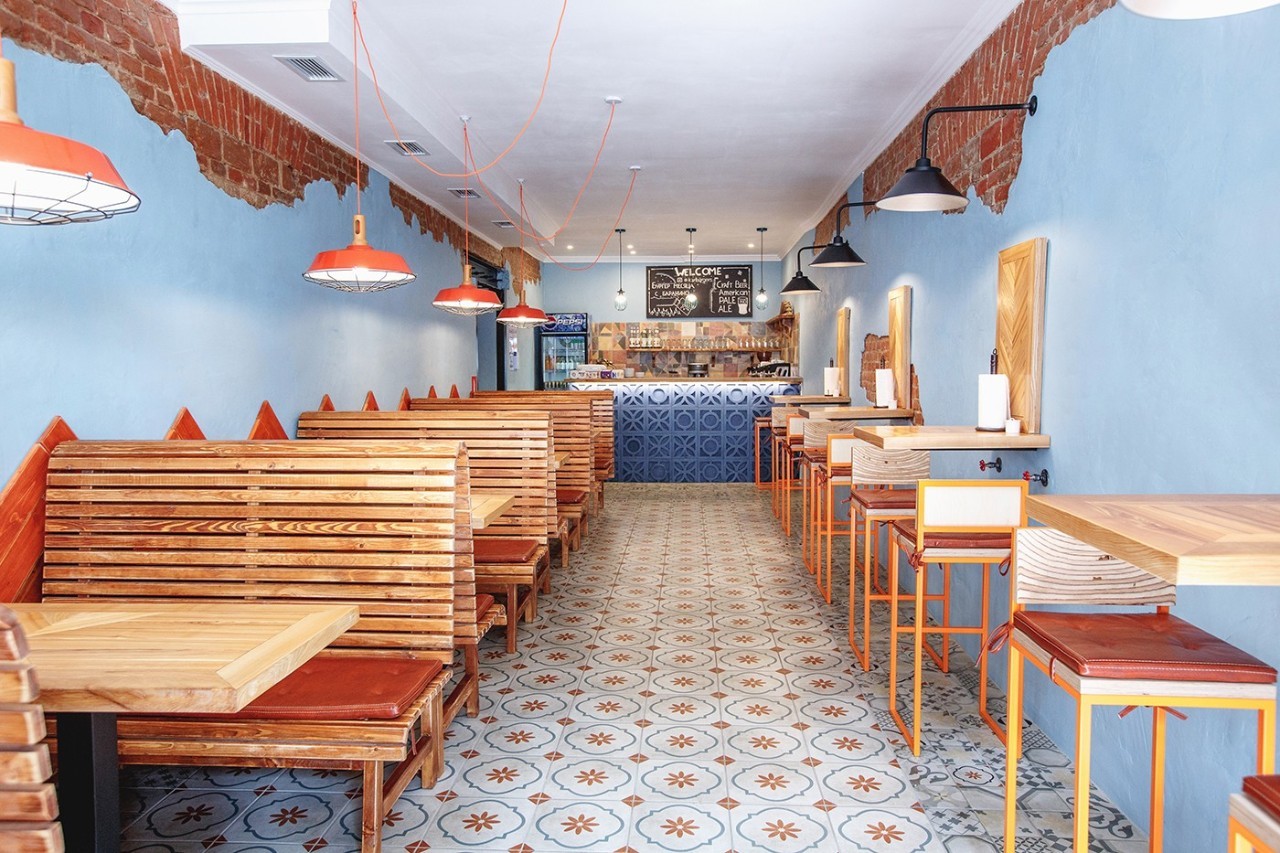 主打輕鬆的風格,淡藍色配合故意露出的紅色磚牆十分特色。木質的桌椅,與紅色相呼應。手握漢堡和飲料杯的馬克思,成為了店的“代言人”。地上的花瓷磚更增加了很多複古感覺。