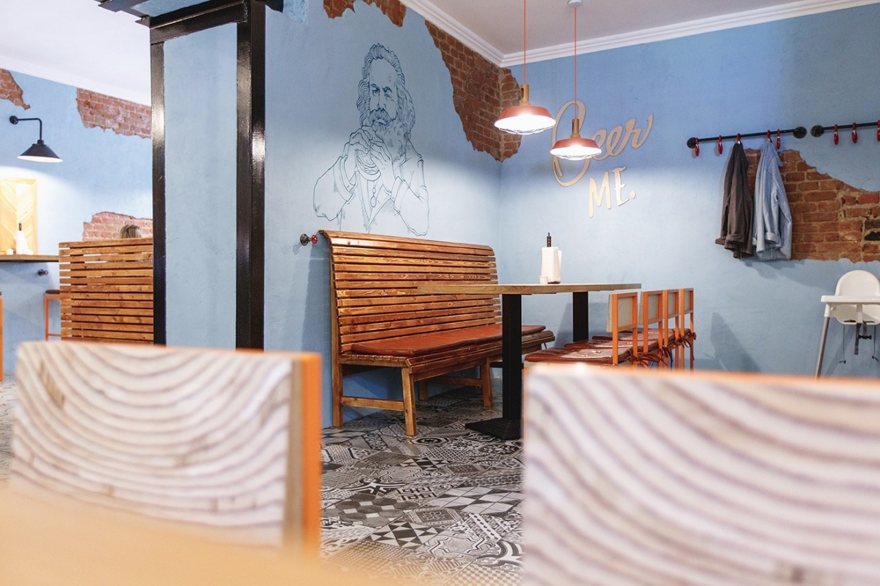 Karl Marks burgers 是一家俄羅斯的漢堡餐廳,以馬克思(Karl Heinrich Marx)命名。店內的空間方案由當地設計師 Dmitry Neal 負責規劃。