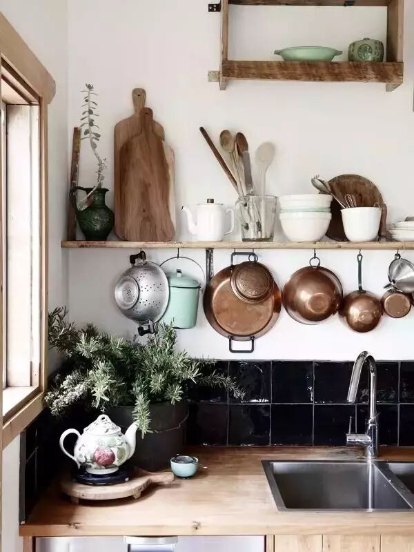 在牆上釘一塊木板,就可以完美收納鍋碗瓢盆刀叉筷子,時尚美觀小清新。